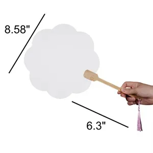 The hand fan is made of bamboo ribs and paper,it has several shapes for you to choose from.It#039;s easy to carry in daily life,take it out to get more air when the weather is too hot.Add elegance and style to your marketing plan when you incorporate this fan into your newest ad campaign! Custom your logo on it.(The color of the fringe is random.)