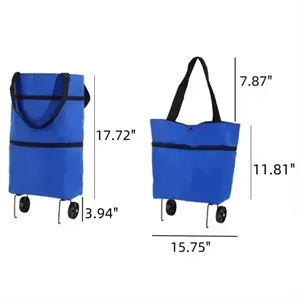 Foldable Oxford Cloth Shopping Bag with Wheels Grocery Cart