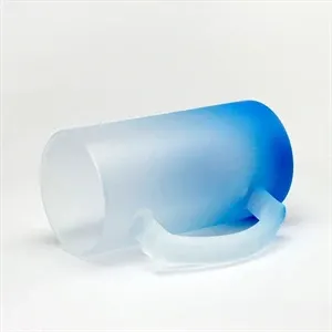 This is a colorful 16-ounce beer mug made of gradient frosted glass that can be custom printed with a logo.