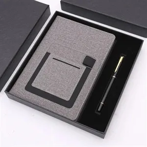 The notebook in this high-end set features a beautiful cover design and imitation leather material, giving it a high-end feel. A mobile phone-sized bag is designed on the cover, which can conveniently place the mobile phone, so that users can easily store and access the mobile phone while using the notebook. In addition, the notebook cover has a pen clasp to securely hold the pen, ensuring easy access to it at all times.