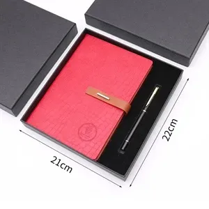 Leather cover high-end a5 notebook gift set with custom logo