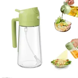 Portable glass oil spray can, spray and pour oil in one. Material: Glass plus PP. Process: high temperature firing, assembly. Thickened glass, automatic closure of bottle cap, smooth oil without dripping, non-slip bottle bottom. Capacity: 470ML. 3.15" L x 7.28" W
