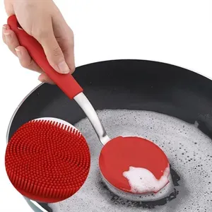 The brush head is made of silicone and stainless steel,which is durable and healthy,has strong decontamination ability. There are 5 colors for you to choose from,safe,eco-friendly,a healthy choice for each household.These brushes are durable and easy to use time and time again.No longer worry about buying new sponges that you have to quickly throw away.