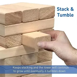Spend hours of fun with this stacking puzzle set. Made of sturdy, high-quality wood. Comes in an adjustable polyester bag. Includes 54 blocks. Imprinting on bag only.