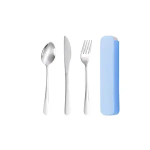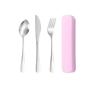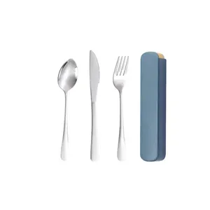 This is a stainless steel tableware set that includes spoon, fork and knife,which is non-toxic, harmless, durable and environmentally friendly.It is very suitable for travel, picnics, and school use.