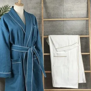 This thin cotton jewel check high-end high-quality bathrobe is suitable for use in luxury hotels, resorts, spas or high-end spa facilities. Not only does it provide comfort and practicality, it also showcases your attention to detail and quality, making your guests feel pampered.