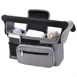 Made of Oxford fabric. Internal multi-functional partition design, with 2 insulated cup holders, plenty of pockets, easy to organize. With a detachable wristlet, you can also remove the entire organizer from the stroller and wear it over your shoulder using the included straps. Ideal for young mothers when strolling their baby outdoor. 13" L x 3.9" W